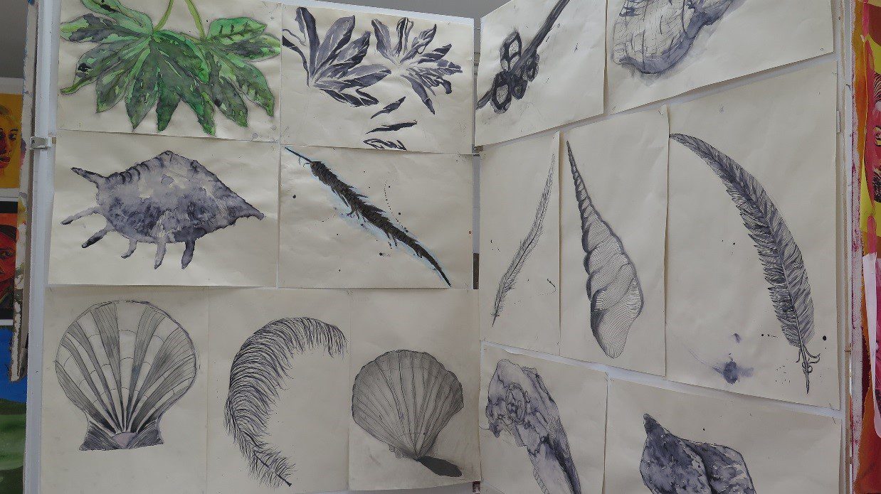 Mrs Morris has been determined to work “large” too and has adapted her “natural forms” project in a similar manner. Unfortunately, we have not been able to build on this project to the active and busy lino printing stage because of the logistics involved with sharing rollers and ink. We hope to revisit that way of working later in the year.