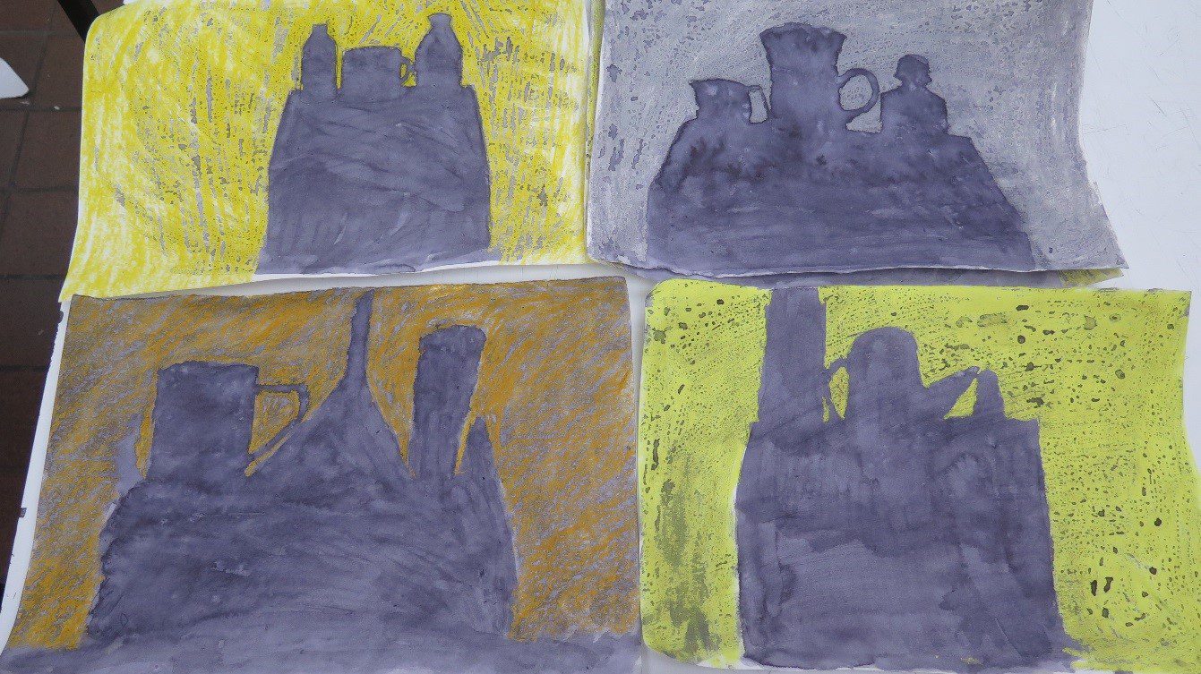 I set about teaching them basic measuring and drawing techniques as well as challenging them by suggesting they try drawing the “negative “ space or the air rather than the objects.