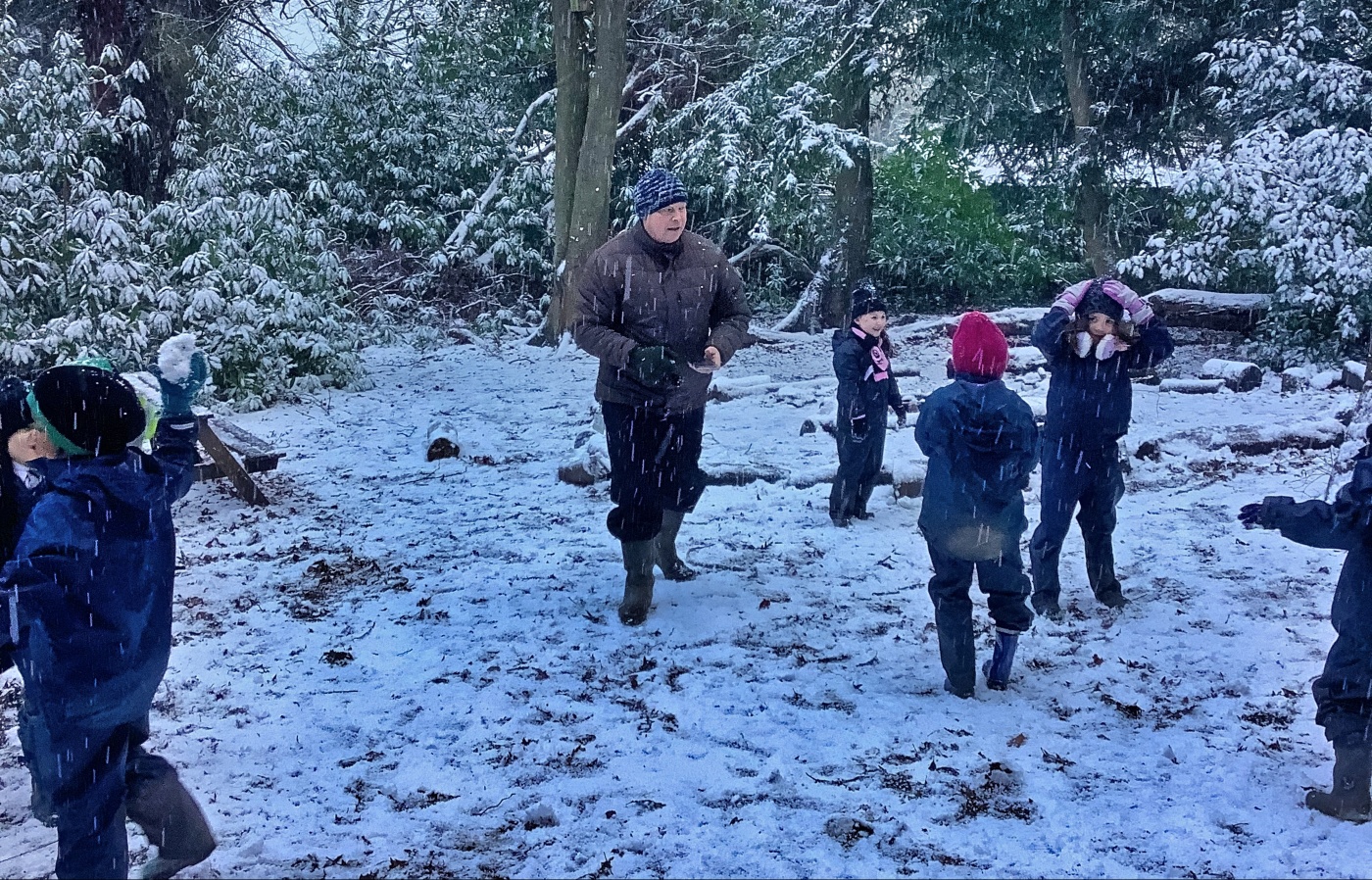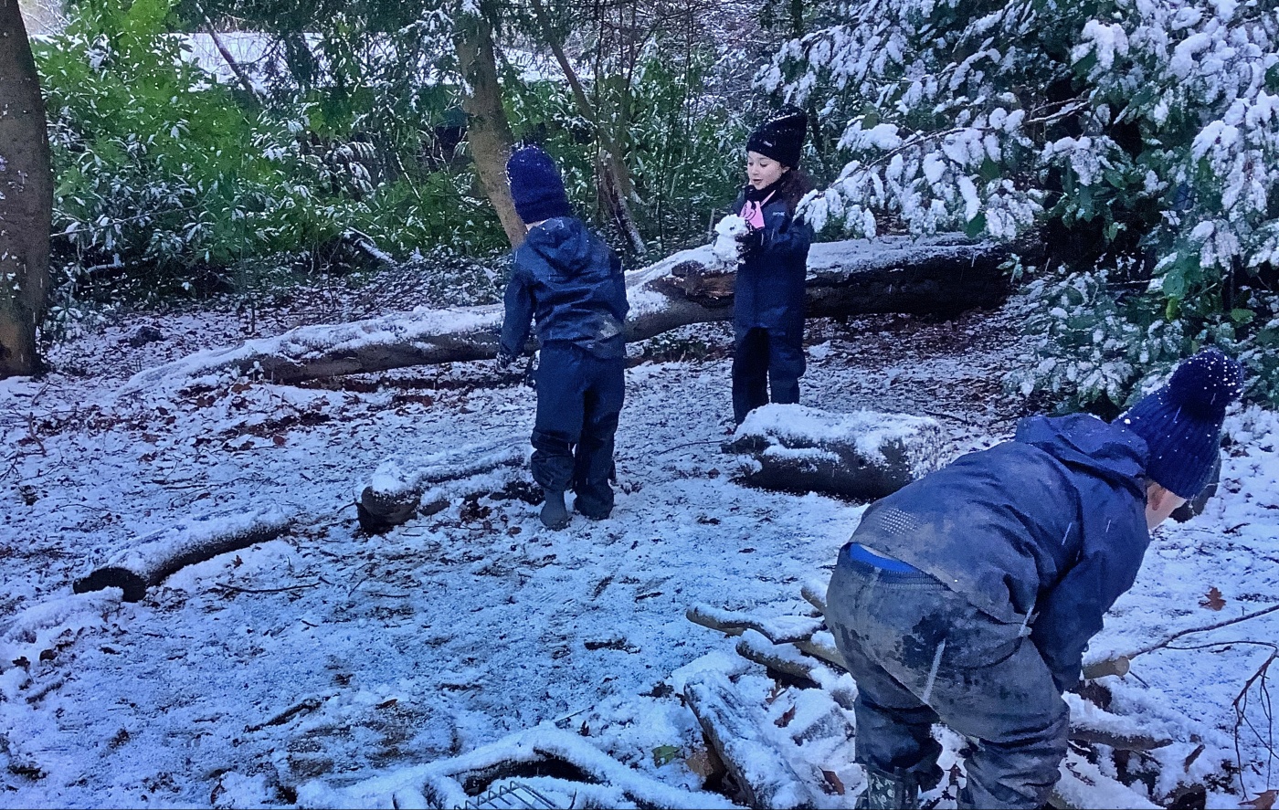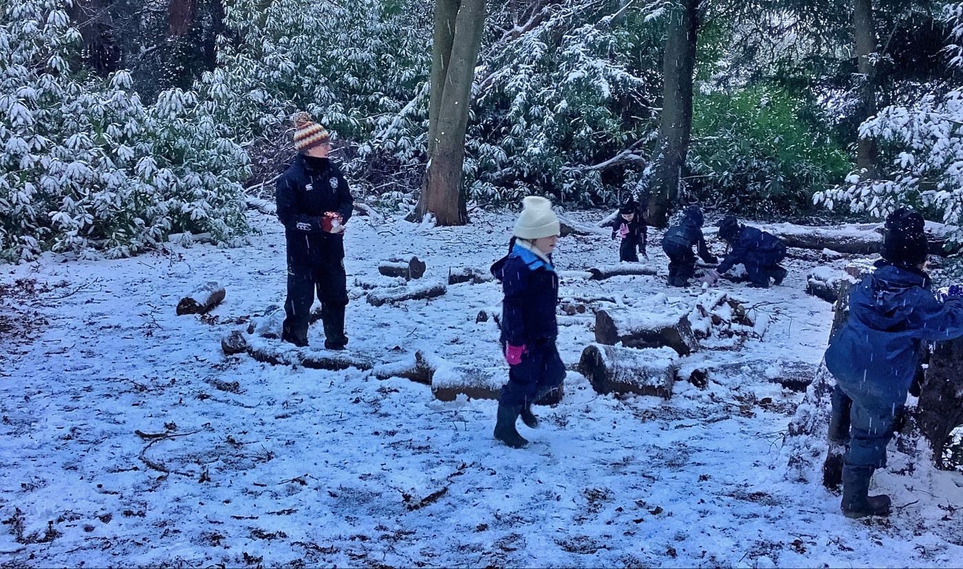 Forest School in the snow with Years 1 and 2