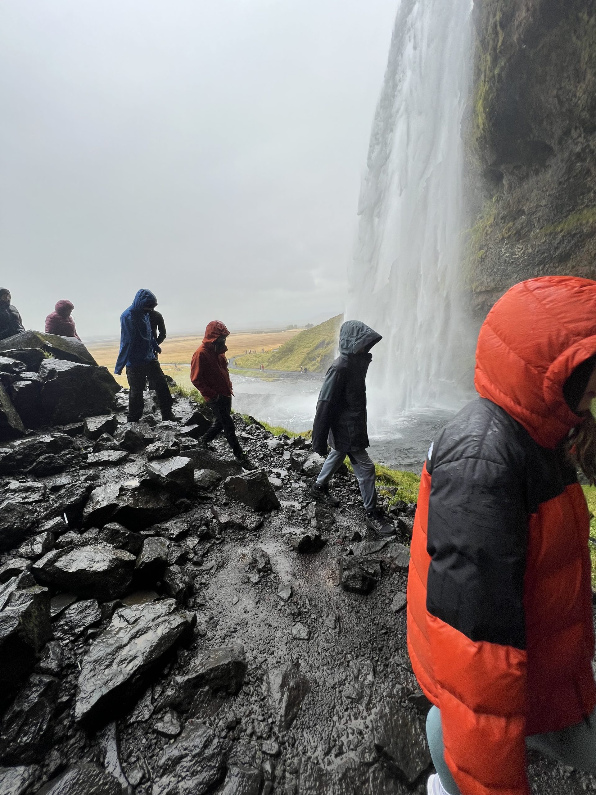 - Seljalandfoss waterfall, where they could walk behind the cascading water curtain.