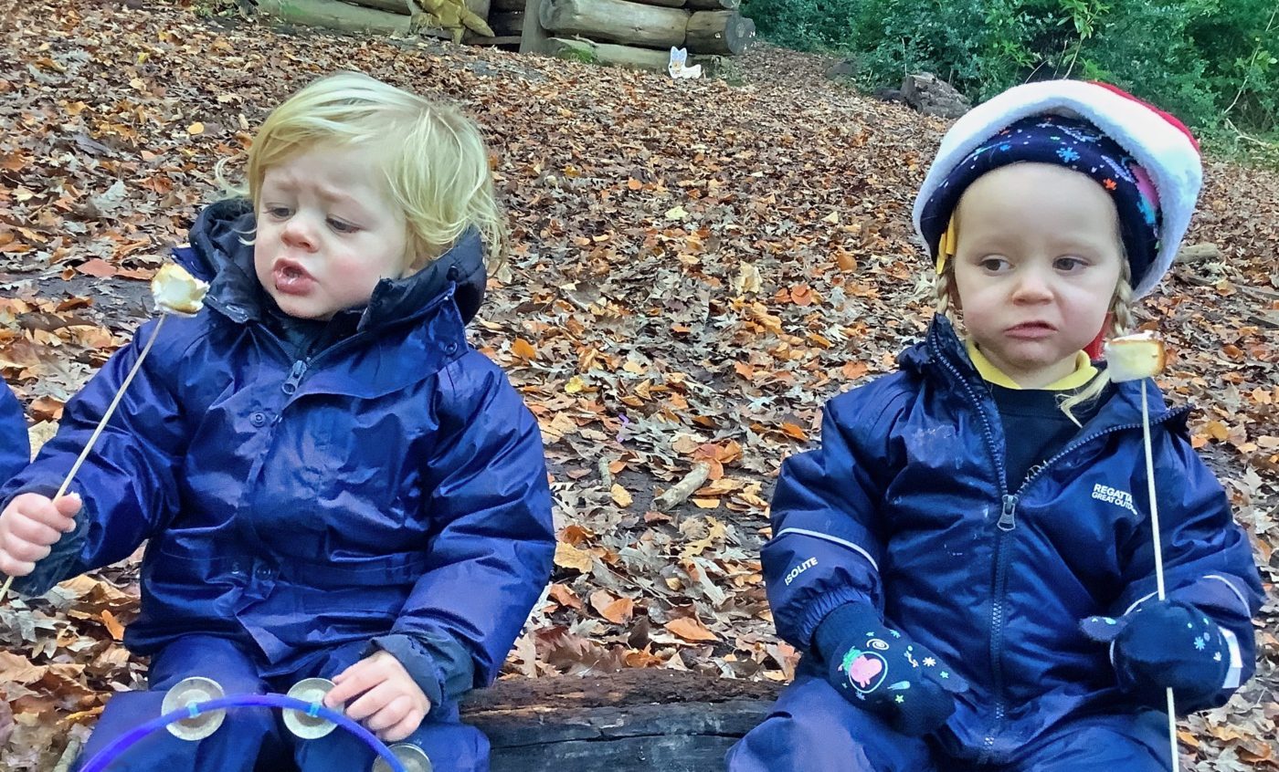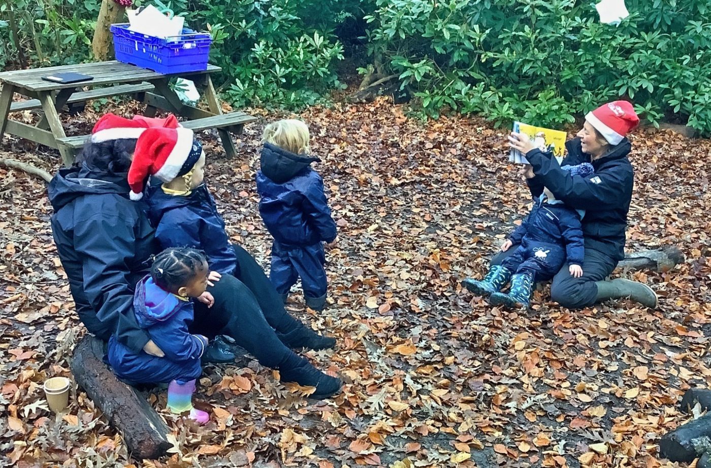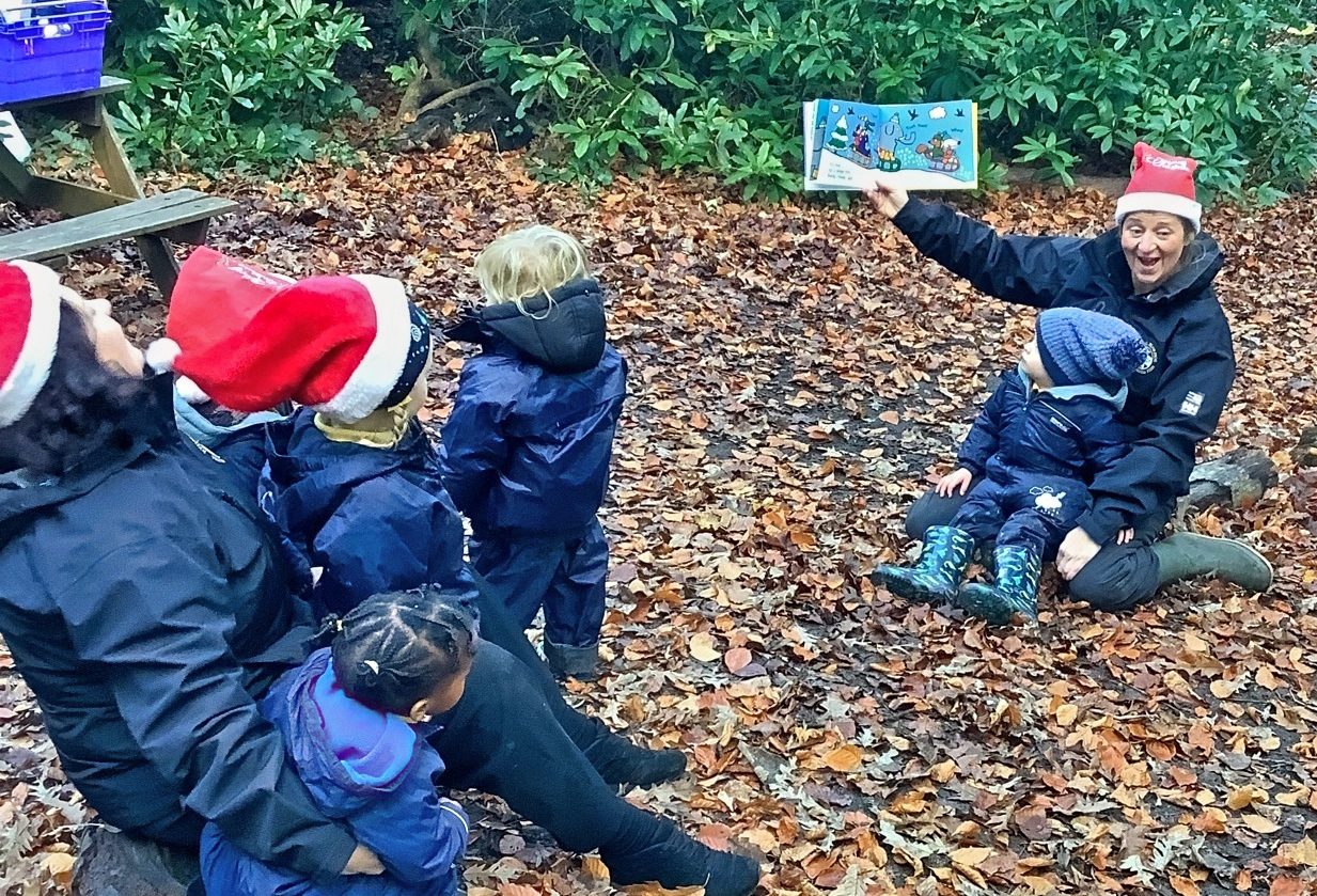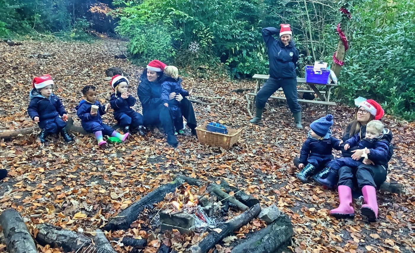 Pre-Schoolers are already fully aware of safety by the fire from previous Forest School sessions. They all sang songs and read Christmas stories.
