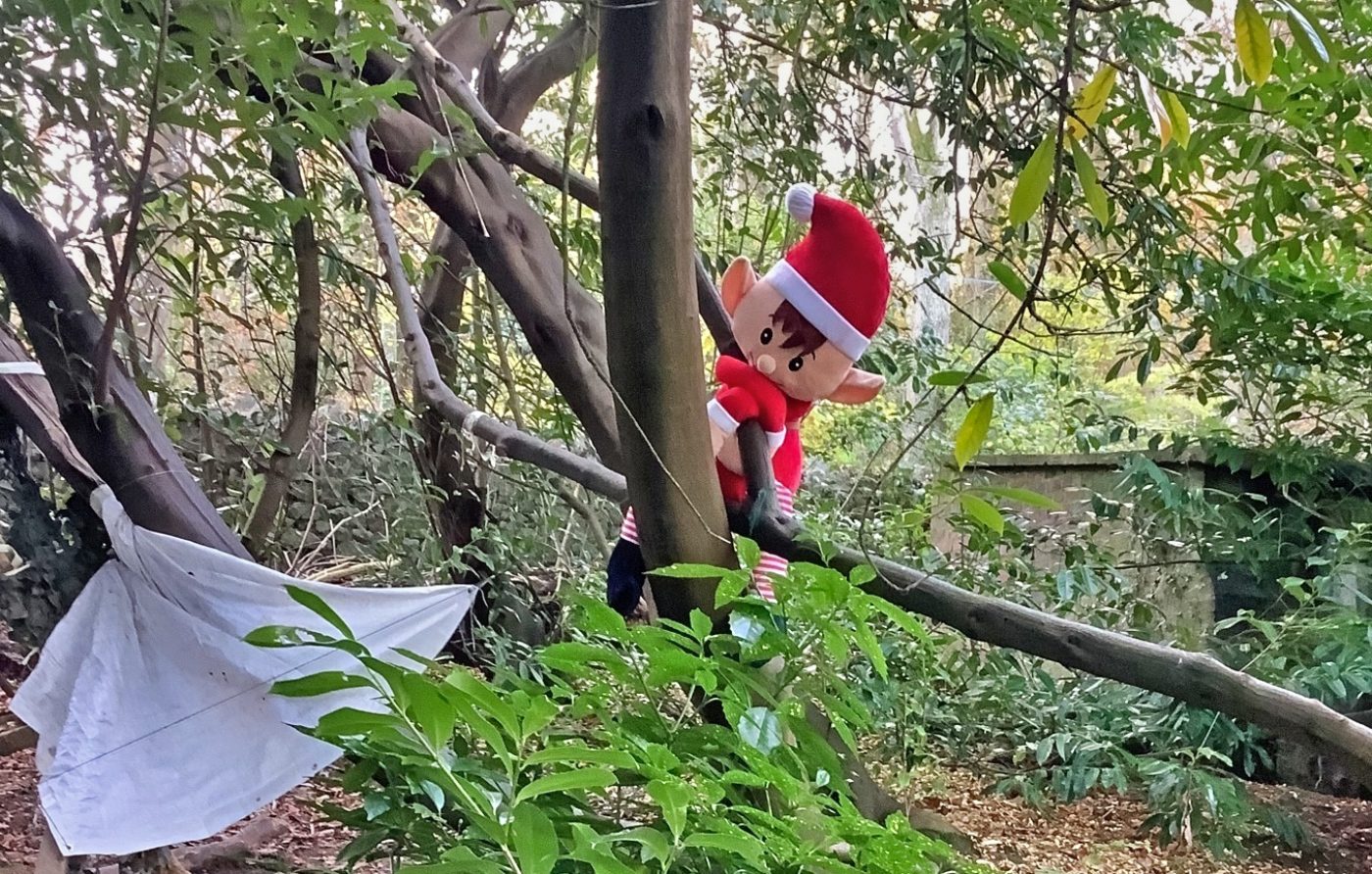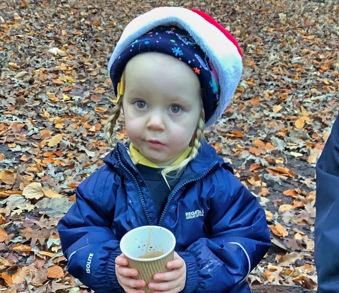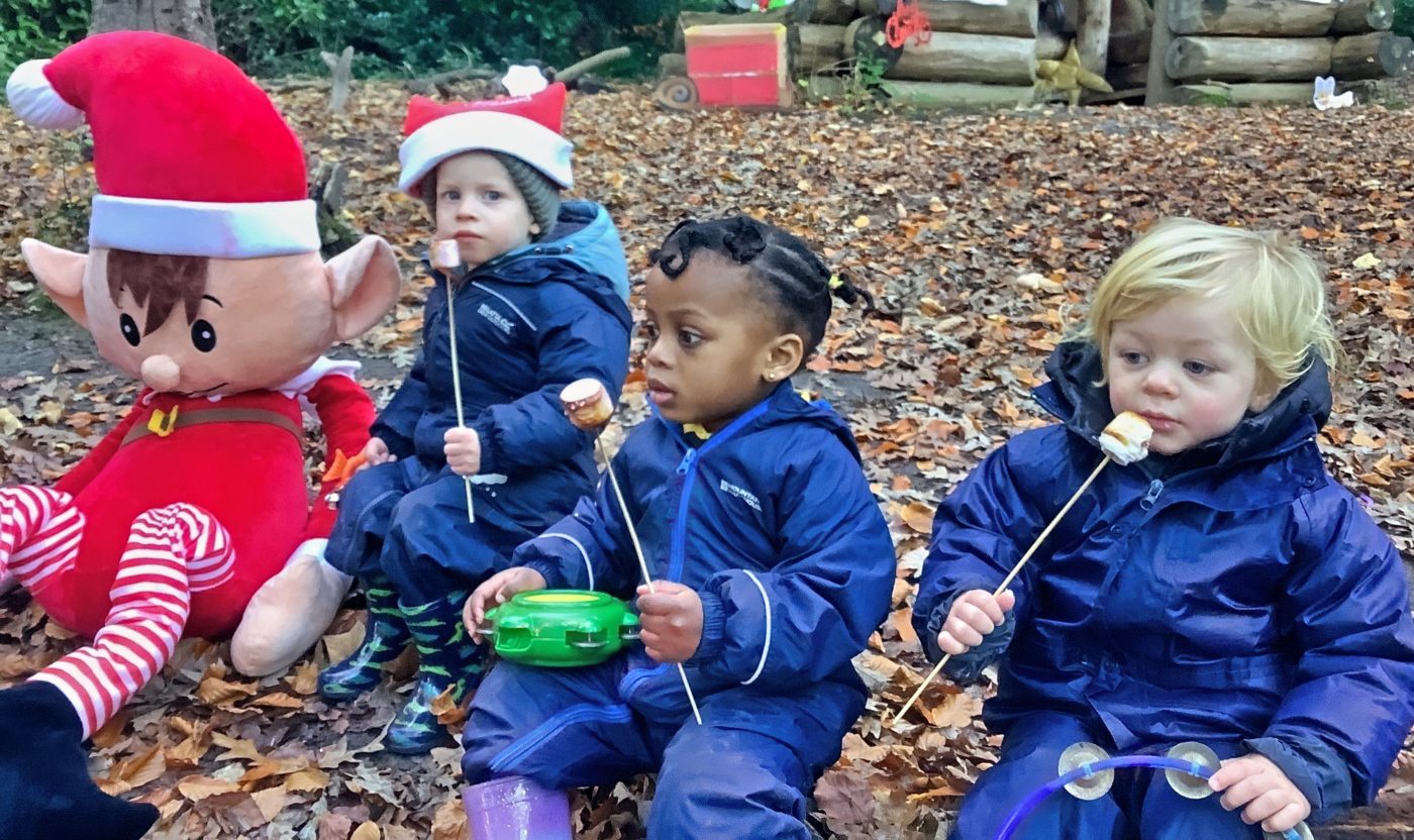 The children looked for Buddy the Elf in the woods before eventually spotting the cheeky chap hiding in the trees. Buddy joined them for hot chocolate or hot blackcurrant, toast and marshmallows, which were toasted on the fire.