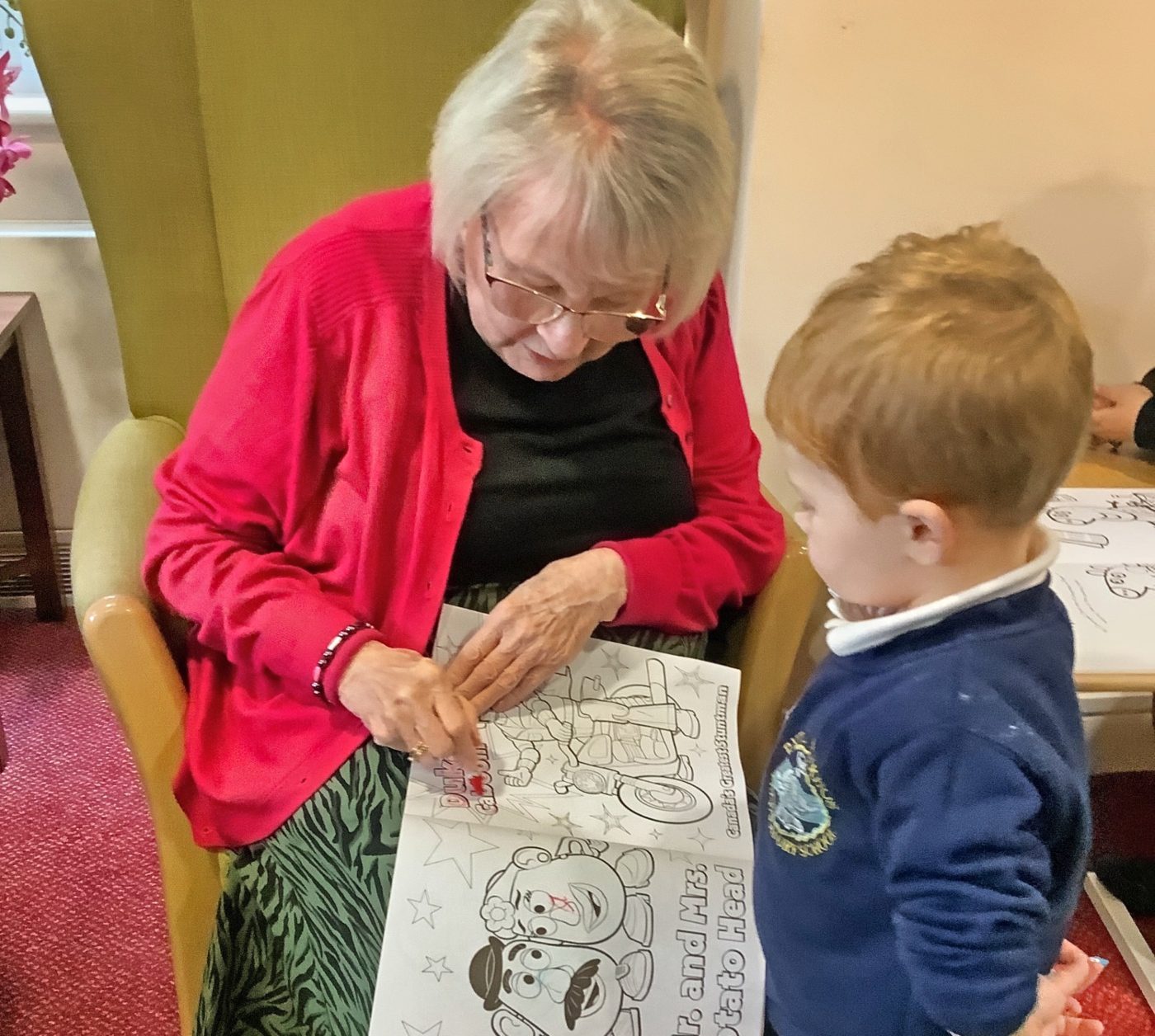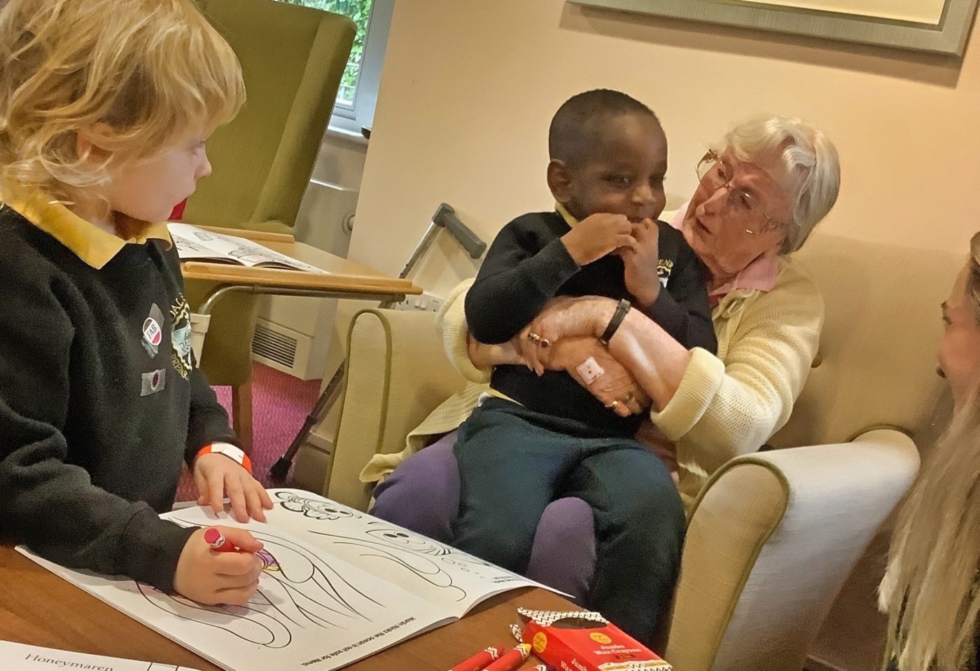 During their latest stay, children spent time colouring with residents, making towers with bricks and singing old-school nursery rhymes which went down extremely well.