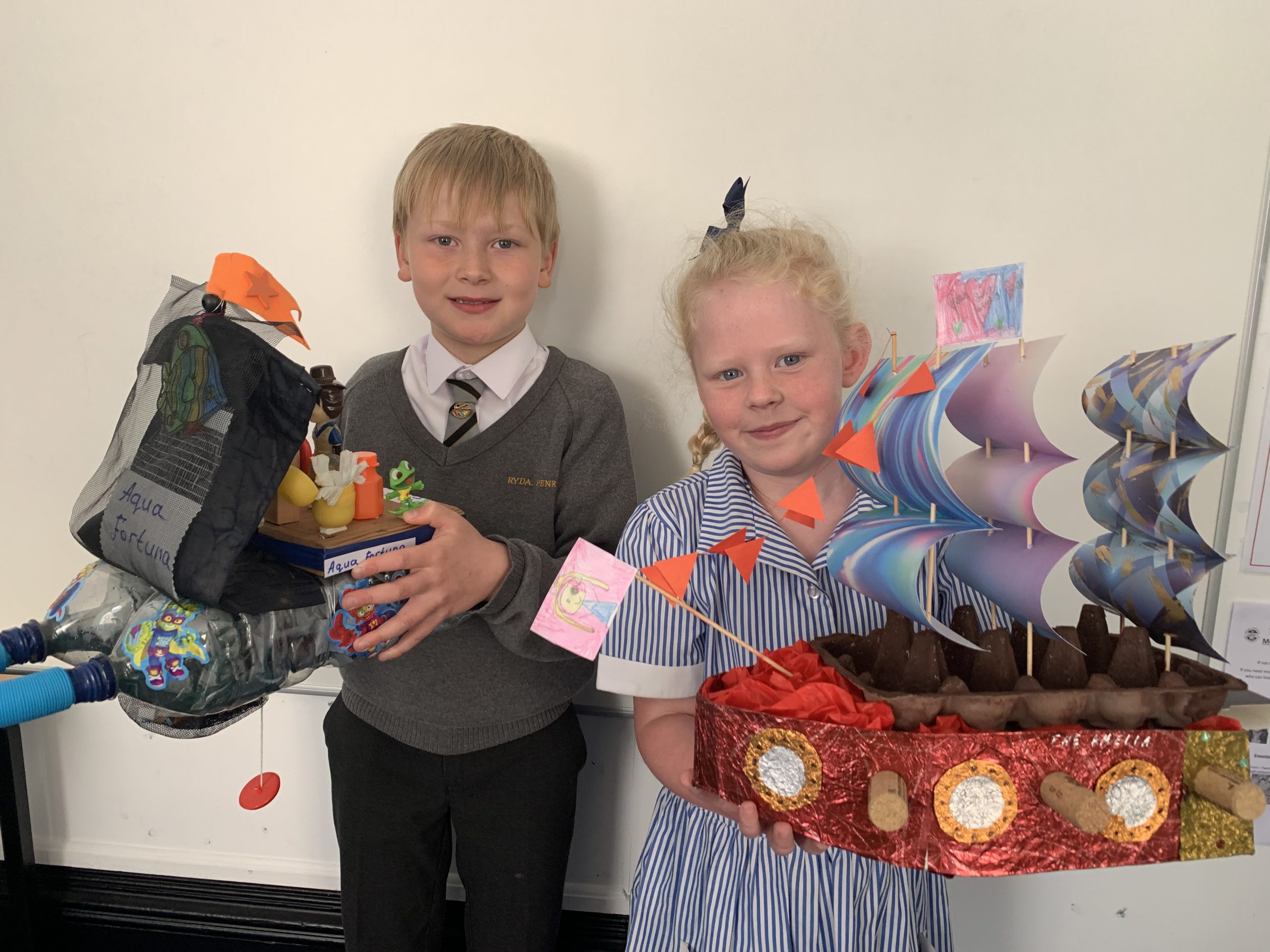 Pupils also had the opportunity to see the results of a recent competition organised by the pupil-led Eco Committee. As part of the competition, pupils were tasked with creating boats using recycled materials, drawing attention to the issue of ocean pollution. The creations showcased by the pupils were not only remarkable in their artistic quality but also demonstrated their inventiveness and commitment to the cause.