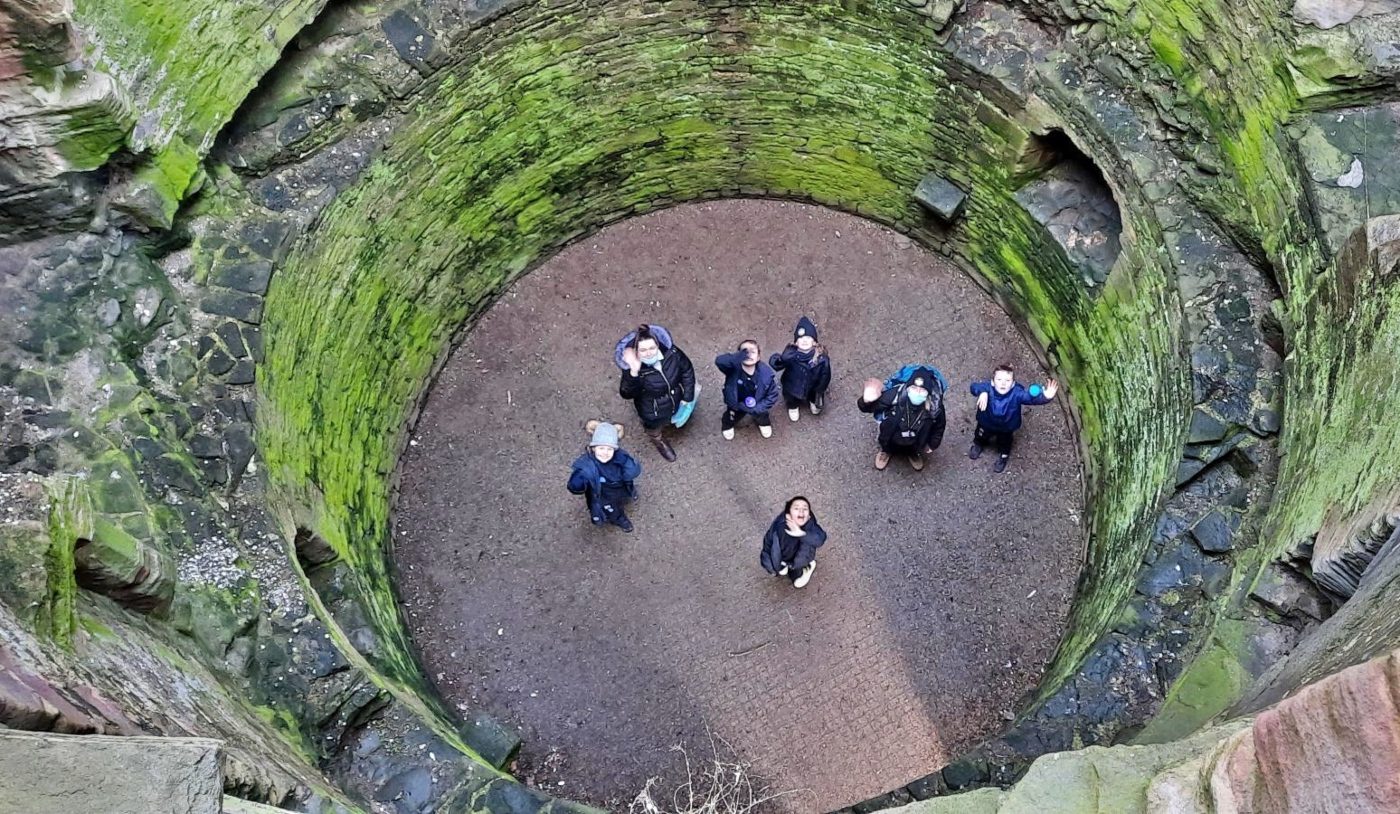 After a quick stop in the chapel to eat lunch and admire the beautiful stained glass, they set off for an afternoon of activities. The pupils split into two groups – attackers and defenders – and went off around the castle.