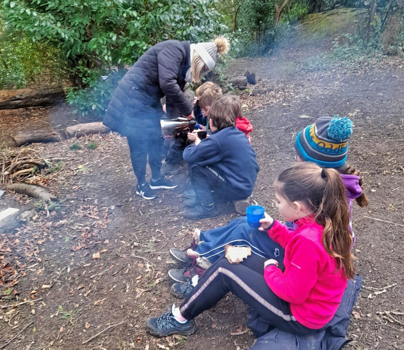 Mrs Pyves and Mrs James made sure they had the correct equipment for a morning in the school forest, which also included making toast on an open fire and plenty of hot chocolate for the early risers.