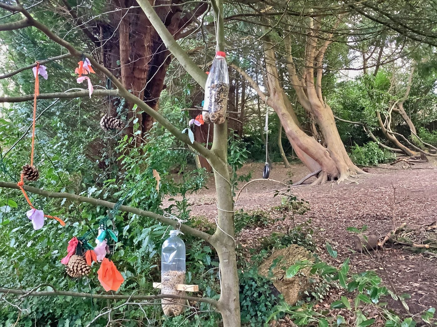 Pupils spent time beforehand making some containers and other creative items, which were then filled with food to entice the vast wildlife residing in the Forest School out into the open.